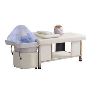 The headspa can be easily converted to a massage table by reversing the water arch and placing the additional massage pad on the sink.